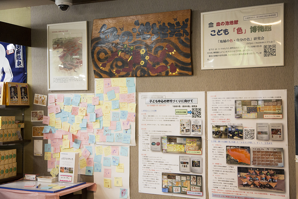 展示には各施設のスタッフも全面的に協力。血の池地獄に勤める甲原利江子さんは、業務の合間にポストイットコーナーの付箋をこまめに整理するなど、展示・運営を積極的にサポート。「地獄の泥を使った子どもたちの作品が本当に素晴らしく、血の池地獄のPRにもつながっているので、私たちスタッフも感謝しています」と語ってくれました。