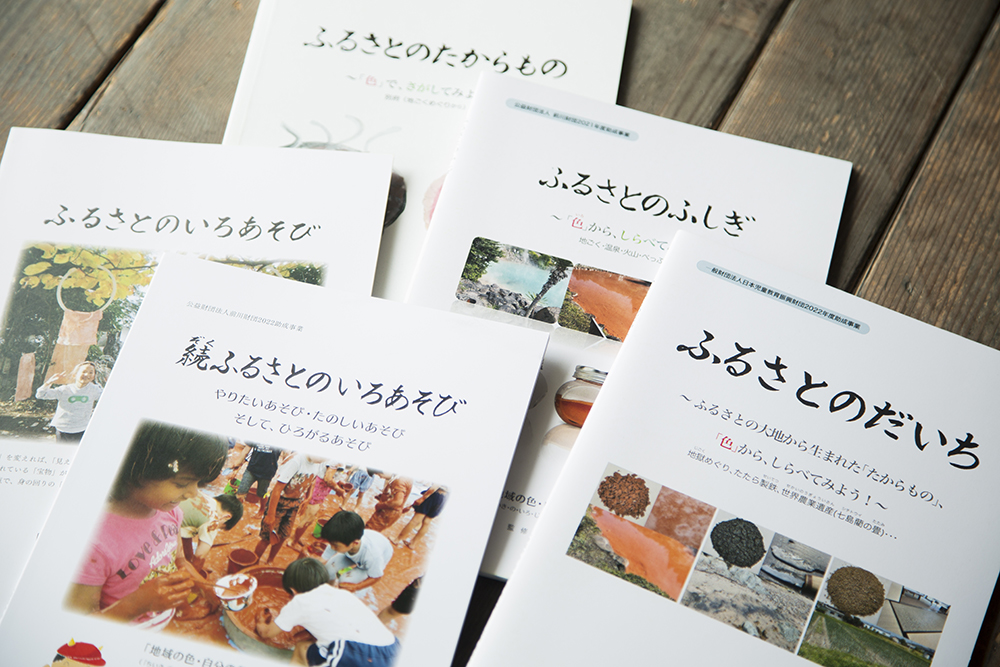 「色を活用したふるさと学習」の実践校は現在、大分県内の10カ所以上に広まっています。教材もこれまでに5冊制作し、実践校の子どもたちをはじめ、県立図書館や関係市町村の図書館、別府市の全市立幼稚園や全小中学校、国東市の関係幼稚園や関係小学校、大分県認定こども園連合会などにも配布。さらに、多くの人に活用してもらえるよう「地域の色・自分の色」研究会のWebサイトでも公開されています。