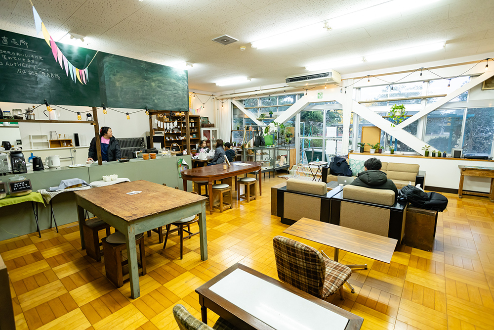 3階にはコワーキングスペース「ハタラキバ」を開設。校庭では毎月第2日曜日にフリーマーケット&ライブイベント 「TO KNOW SHOW」が開催され、町に賑わいをもたらしています。